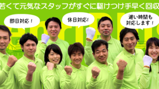 この広範囲なエリアカバーに加え、超特急でお見積りに伺う体制を整えているため、引っ越しで発生したお急ぎで処分したい不用品や粗大ゴミ、事務所の移転で片付けなければいけない不用品など、緊急性の高いニーズにも迅速に対応できます。