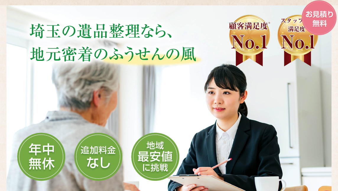 「ふうせんの風」は埼玉県を中心に活動する遺品整理業者です。不用品回収・買取、生前整理・遺品整理、ゴミ屋敷片付けなどを行っています。